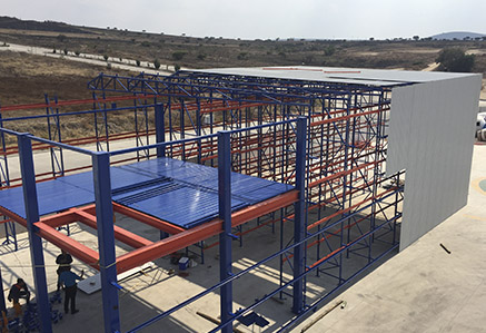 El Techo y las paredes laterales se soportan de la estructura de las estanterías, minimizando costos.