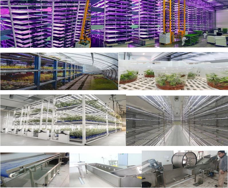 Consisten en módulos de hasta 30 mts de altura con bandejas que rotan permitiendo su retiro a baja altura. Al ser cerradas se puede controlar la temperatura interior, humedad, Co2, iluminación, riego, insectos.